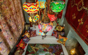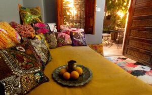 La fontaine jaillit juste devant l'entrée de la chambre Montagnes de l'Atlas, sur une petite terrasse semi-privée. En pénétrant à l'intérieur, vous serez transporté dans une véritable grotte berbère. Les murs bruts sont habillés de couleurs géométriques abstraites et extravagantes, propres aux premiers habitants du Maghreb, les Berbères, mystiques et mystérieux. En avançant, vous atteindrez la chambre la plus isolée, la plus calme et la plus naturellement climatisée du Riad Roxanne. La chambre dispose d'un grand lit king-size et de magnifiques tapis berbères suspendus à chaque mur. La pièce maîtresse de la chambre est l'immense baignoire des grottes de montagne, offrant un véritable moment de détente et de relaxation. Pour un maximum de calme, d'isolement et d'intimité, la chambre Montagnes de l’Atlas est faite pour vous.